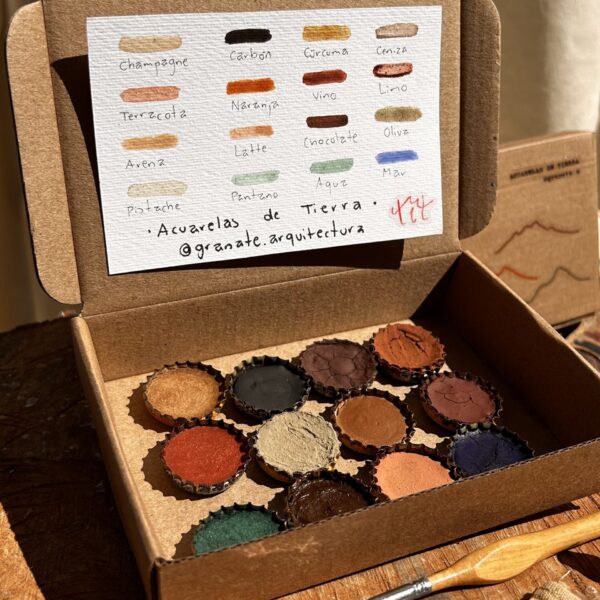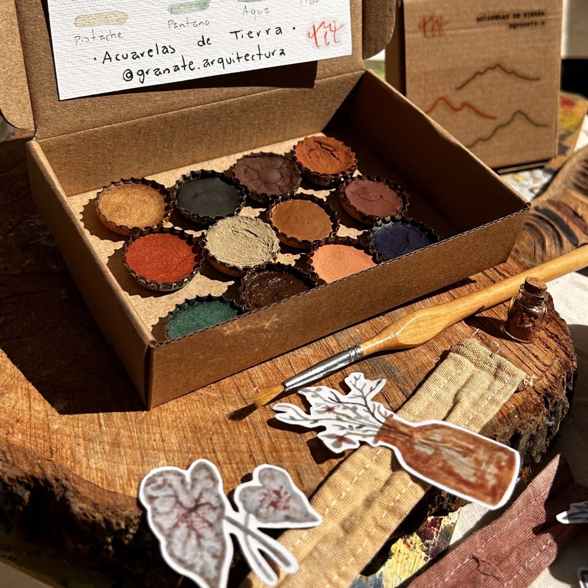 - Las acuarelas vienen en una caja de cartón compostable perfecta para llevar a todas partes